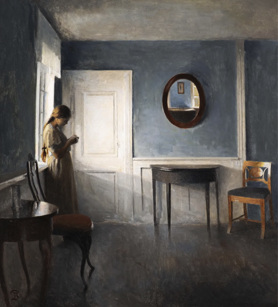 "Interior with Girl by a Window" is a beautiful example of the domestic interior portraits for which Peter Ilsted is known. This work is among his most refined and carefully executed compositions.Ilsted subtly plays with color and light in this painting, creating a special atmosphere. This creates a silent dialogue between the artist and the intimate ambiance of the bourgeois house.
